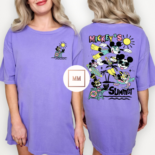 Get ready for summer with Purple Mick's Summer Tee! Featuring a pocket front and a cool design of Mick swimming and enjoying the beach on the back, this tee combines style and functionality. Made for comfort and fun, this tee is perfect for any beach lover or summer adventurer.