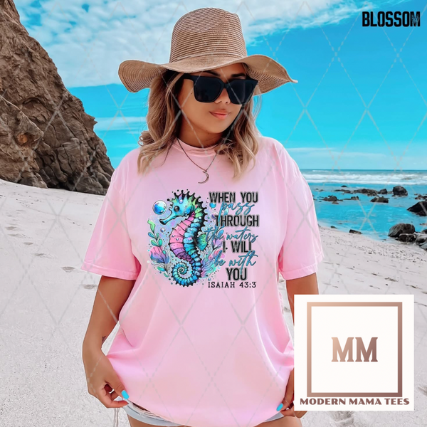 Experience the strength and resilience of our Pass Through Waters Tee, inspired by Isaiah 43:3. Made with a seahorse design, this shirt represents courage and overcoming obstacles. Embrace its symbolic message and stand strong in any challenge.