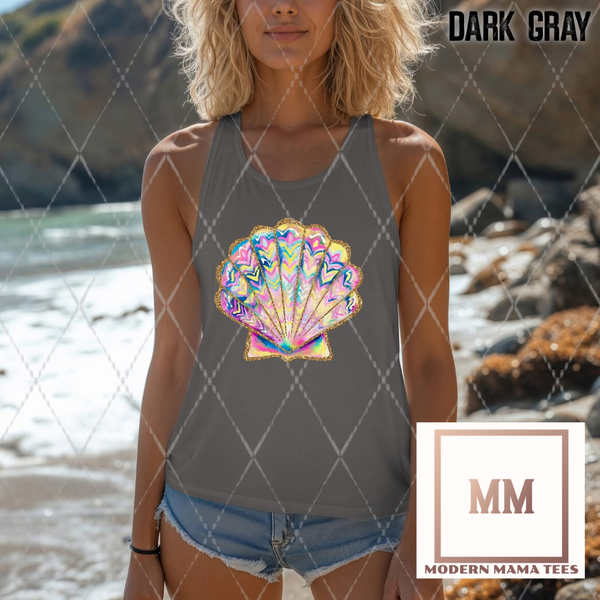 The Summer Scallop Shell Tank is the perfect addition to your warm weather wardrobe. Featuring a colorful combination of pink, blue, and yellow, this top will make you stand out in any summer setting. Made with high-quality materials, it is both comfortable and stylish, making it a must-have for any fashion-forward individual.