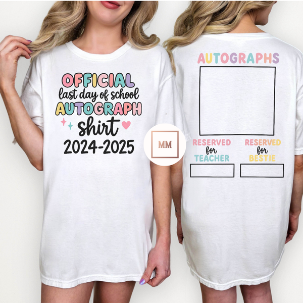 Celebrate the end of the school year with the Toddler/Youth Autograph Tee. Let your friends leave their mark on your shirt, creating a lasting memory of your 2024-2025 year together. A perfect keepsake for your little one to cherish.