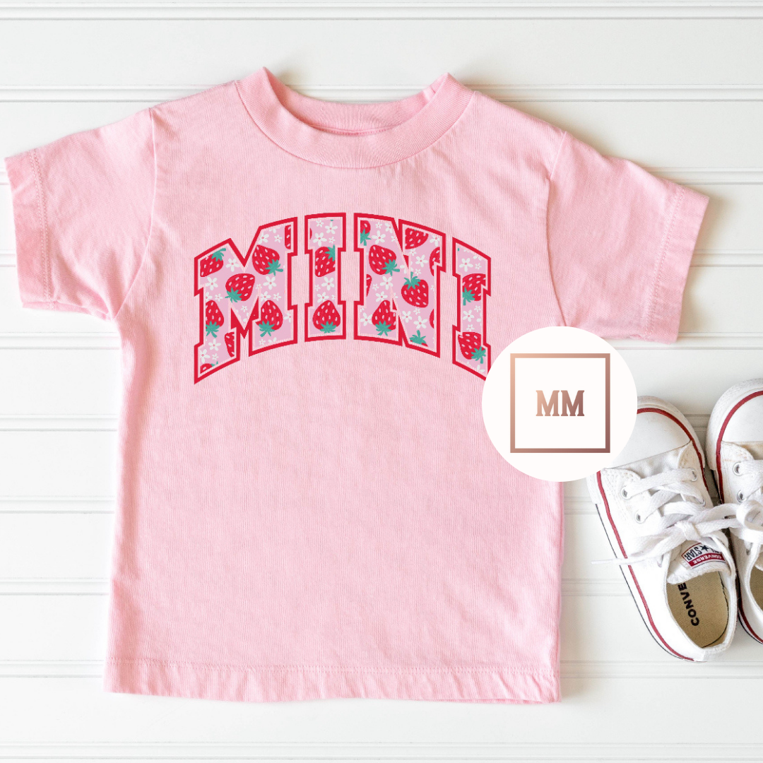 This mini strawberry tee is perfect for your toddler or youth to match their mama. Made with soft and comfortable material, it provides a cute and stylish addition to any outfit. Upgrade your child's wardrobe with this adorable mini tee.