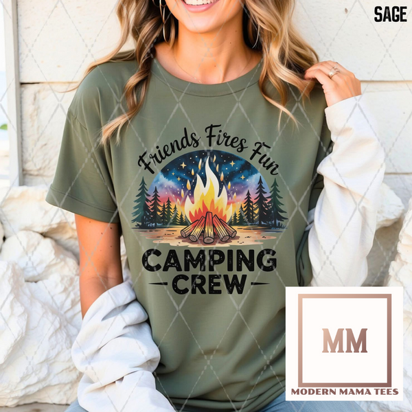 Experience the ultimate camping trip with your crew with our Camping Crew Tee. Made for outdoor enthusiasts, combine the 3 F's - friends, fire, and fun - for the perfect camping experience. Get ready to relax and enjoy the great outdoors with all you need, all in one tee.