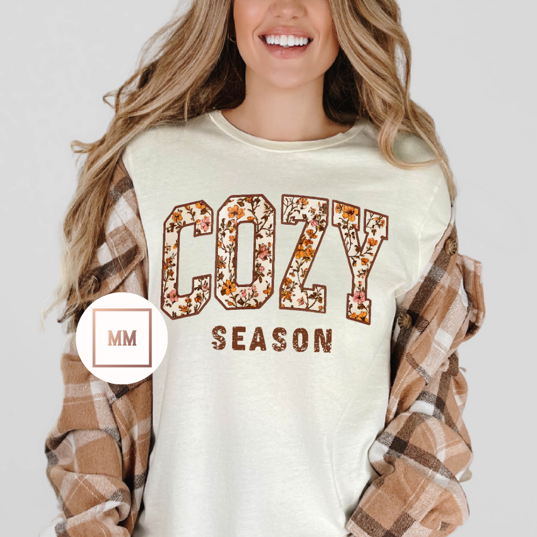 Introducing the Cozy Season Tee, perfect for embracing the fall vibes. This tee is designed with cozy season in mind and features pretty flower details within the letters. Stay stylish and comfortable all season long.