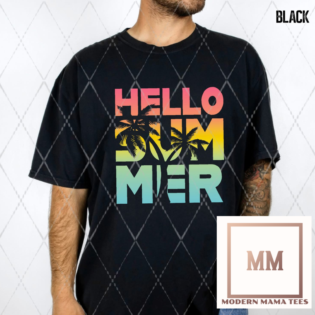 Introducing the Hello Summer Tee, featuring a playful design of palm trees. Embrace the warmth of the summer season and add a touch of tropical flair to your wardrobe. Made with high-quality materials, this tee offers lasting comfort and style. Perfect for any beach day or summer adventure.