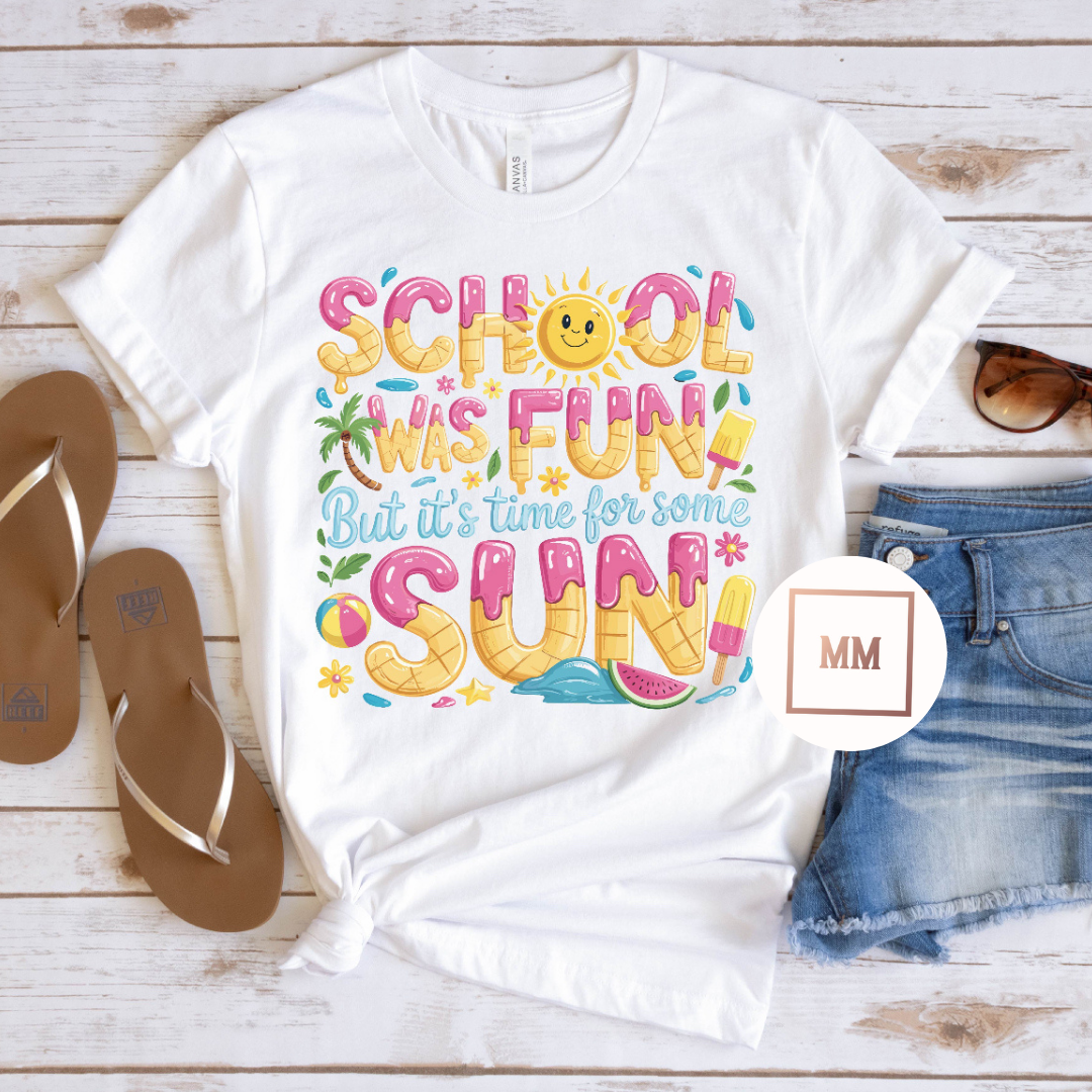 This School Was Fun Tee features playful letters that resemble ice cream cones, evoking feelings of summertime and relaxation. Say goodbye to homework and hello to fun in the sun with this trendy, comfortable tee.
